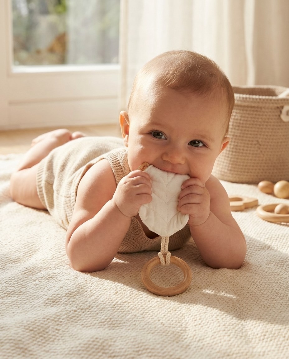 El chupete con muselina es el conjunto ideal para cuando a tu bebé le están saliendo los dientes. El chupete está hecho de madera de haya amigable con el medio ambiente y de suave tela de muselina. Totalmente seguro para los bebés, proporciona un alivio reconfortante durante la erupción de los dientes. Además, el chupete se puede usar también como juguete para bebés. Se adapta perfectamente a nuestros otros productos de muselina, creando un hermoso conjunto que puedes regalar en una celebración infantil.