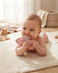 El sonajero con pañuelo de muselina es el conjunto ideal para cuando a tu bebé le están saliendo los dientes. El sonajero está hecho de madera de haya ecológica y suave tela de muselina. Totalmente seguro para los bebés, ofrece un alivio reconfortante durante la dentición. El sonajero también se puede usar como juguete para los más pequeños. Se adapta a nuestros otros productos de muselina, creando un hermoso conjunto que se puede regalar en una celebración infantil.