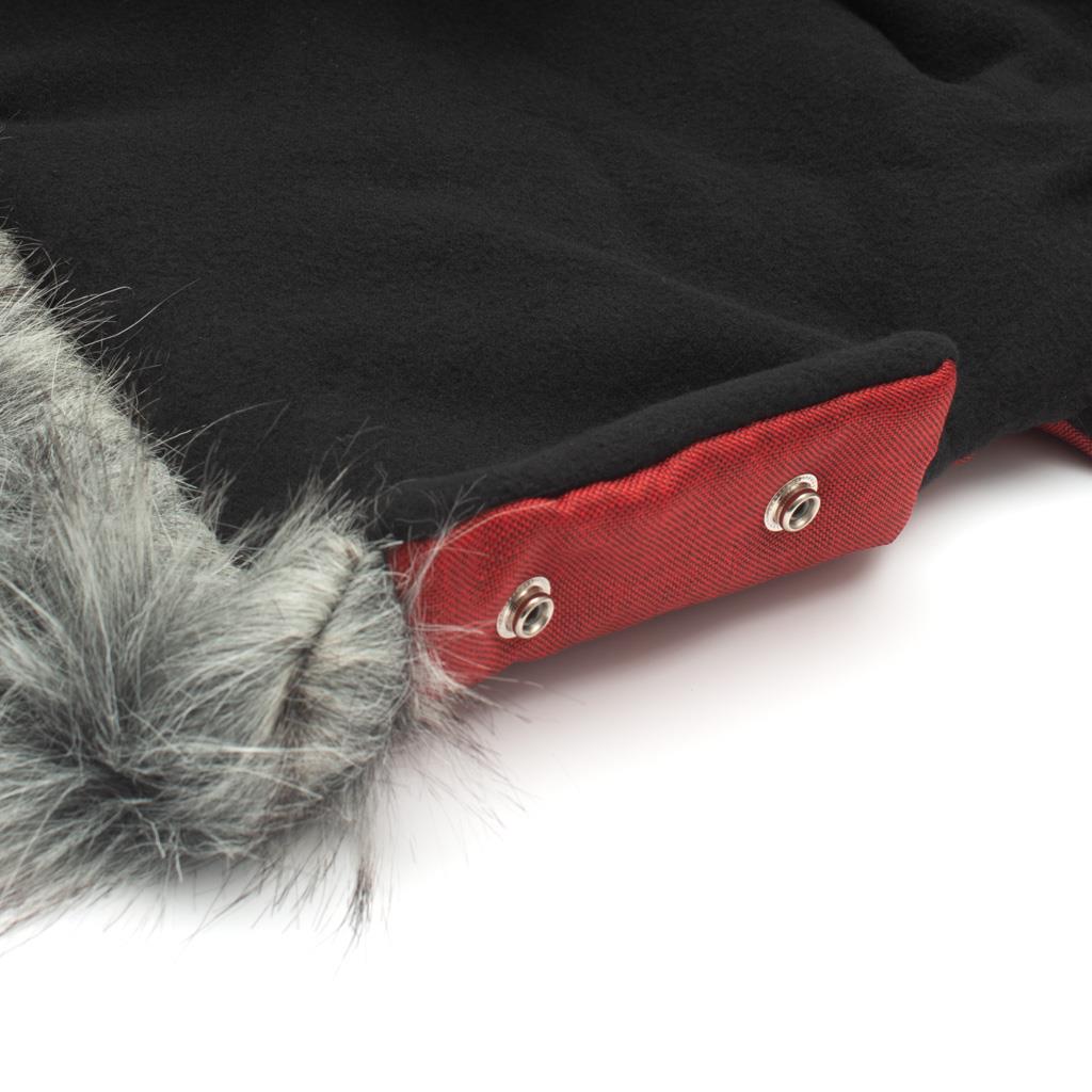 Mufle para cochecito New Baby. Un accesorio moderno y práctico para el cochecito, siempre listo para proteger las manos del frío, el viento y la llovizna. Cada mano se coloca en un guante separado, que está unido en la parte superior. No es adecuado para cochecitos de golf. La ventaja del mufle es que las manos se calientan rápidamente, incluso sin guantes. Está fabricado con materiales de alta calidad que tienen excelentes propiedades de aislamiento térmico. Los mufles son muy cálidos y agradables para las manos. Se sujeta al asa del cochecito de forma sencilla con botones de presión. Composición: material exterior 66% acrílico, 17% poliéster, 17% modacrílico; material interior aislante: 100% poliéster. El paquete contiene 1 unidad. Dimensiones del mufle en el asa del cochecito: largo x ancho: 44x26 cm.