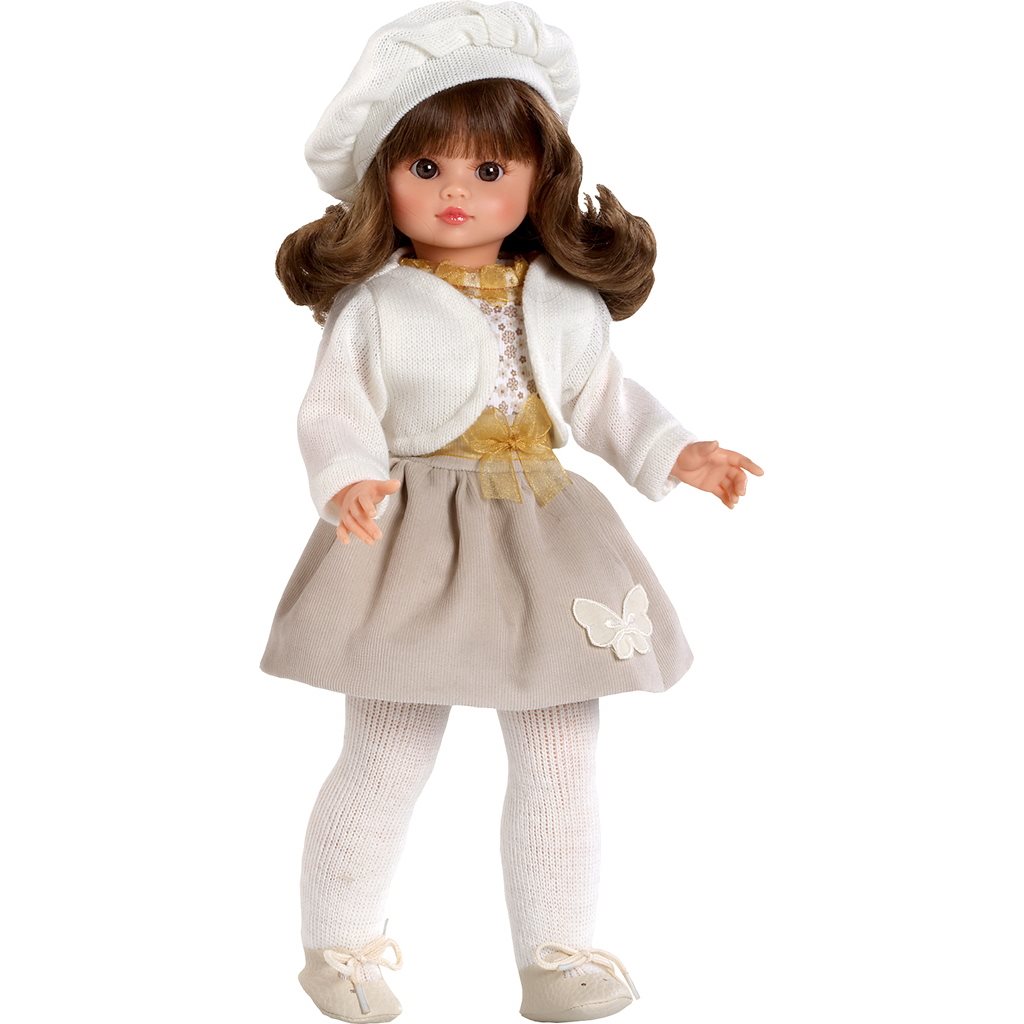 Muñeca de niña Berbesa Roberta, lujosa y española. La encantadora niña Roberta es un juguete maravilloso para cualquier pequeña que quiera jugar a ser mamá. La muñeca tiene un cuerpo de vinilo, brazos y piernas. Esta preciosa muñeca parece verdaderamente viva. Tiene ojos marrones, pestañas y hermosos cabellos oscuros y largos. La muñeca incluye un suéter tejido, una camiseta, una falda, una boina, medias y zapatos. La ropa es removible. El cuerpo de la muñeca tiene un delicado aroma a vainilla. Esta mágica muñeca también es un bonito regalo. Su longitud es de aproximadamente 40 cm. Apta para niños a partir de 3 años. Se utilizan exclusivamente materiales de alta calidad en su fabricación. Tu niña encontrará en la muñeca a su mejor amiga.