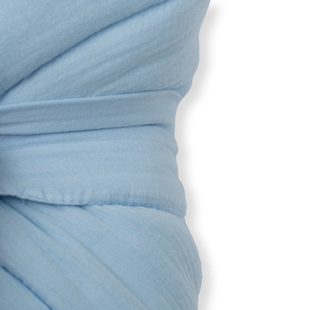 El muselina es una de las telas más puras, simples y suaves del mundo. ¿Y qué lo hace tan especial? Principalmente su transpirabilidad. La estructura liviana permite que el muselina "respire" y asegura una circulación de aire adecuada, lo que reduce el riesgo de sobrecalentamiento. El muselina es muy resistente y se adapta fácilmente a lavados repetidos, volviéndose aún más ligero y suave con el tiempo.