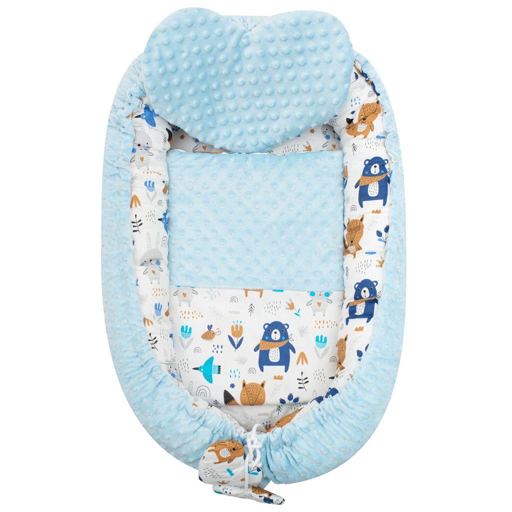 Nido de lujo con mantita para bebés New Baby. Este nido es una ayuda práctica excelente en los primeros meses de vida del bebé. El nido es reversible, puede usarse por ambos lados, interior y exterior. Este nido acogedor y reversible para el bebé genera una sensación de seguridad, haciendo que el pequeño se sienta tan cómodo como en la barriga de mamá. El bebé se duerme mucho más fácilmente y está más tranquilo. El nido cuenta con un cordón práctico que permite ajustar el tamaño, pudiendo apretarlo más o aflojarlo completamente. El nido está hecho de dos tipos de tejidos: el primero es un tejido Minky muy suave y agradable al tacto, con relieves que estimulan la percepción sensorial, y el segundo es 100% algodón. Incluye un cojín en forma de corazón y una manta decorada con un corazoncito. Este nido tiene múltiples usos, se puede utilizar en la cuna, en la carrito, en el sofá o en el suelo. Medidas: aproximadamente 55x75 cm, medidas internas: aproximadamente 35x59 cm. Manta: medidas: 65x47 cm. Composición: un lado 100% algodón, el otro lado Minky 100% poliéster, relleno: fibra antialérgica. Producto de marca checa.