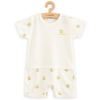 Mono de verano con mangas cortas de la marca checa New Baby Olivy. Este mono cruzado con mangas cortas está completamente estampado con hermosas aceitunas. Tiene un práctico lazo lateral, un botón en el interior y botones entre las piernas, lo que facilita vestirse y cambiar al bebé. En las perneras hay suaves gomas que no presionan las piernas. Este mono de verano tan estiloso hará brillar a cualquier bebé.