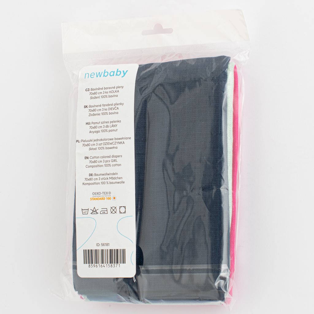 Pañales de algodón de la marca checa New Baby en un pack promocional, son una parte indispensable del equipamiento para tu bebé. El paquete contiene 3 unidades. Colores apropiados para niñas. Los pañales están fabricados en 100% algodón. Son higiénicos, no provocan reacciones alérgicas y ayudan al desarrollo saludable de las articulaciones de la cadera en recién nacidos. Puedes usarlos no solo para cambiar al bebé, sino también para colocar bajo la cabeza del bebé en su cuna o en el carrito. Alta calidad de fabricación.