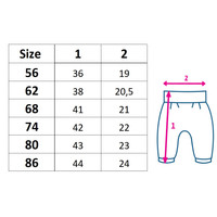 Pantalones modernos y prácticos de la marca checa New Baby Víla. Estos pantalones tienen una banda elástica más ancha en la cintura, un dobladillo más amplio en las perneras y encantadoras parches con estampado de hadas en las rodillas. La comodidad al usar se garantiza gracias a la calidad del material. Composición: 95% algodón, 5% elastano. La colección Víla incluye: camiseta de manga corta, body de manga larga, pantalones intermedios, pantalones, gorro y pantalones cortos.