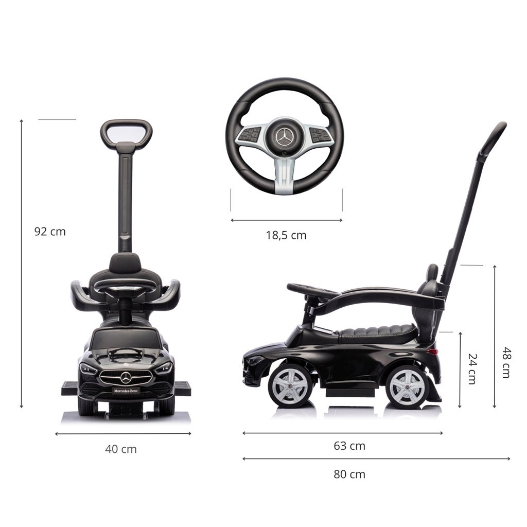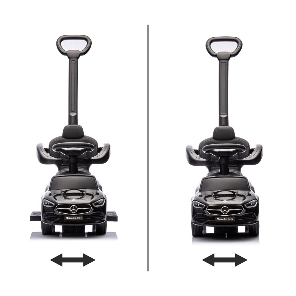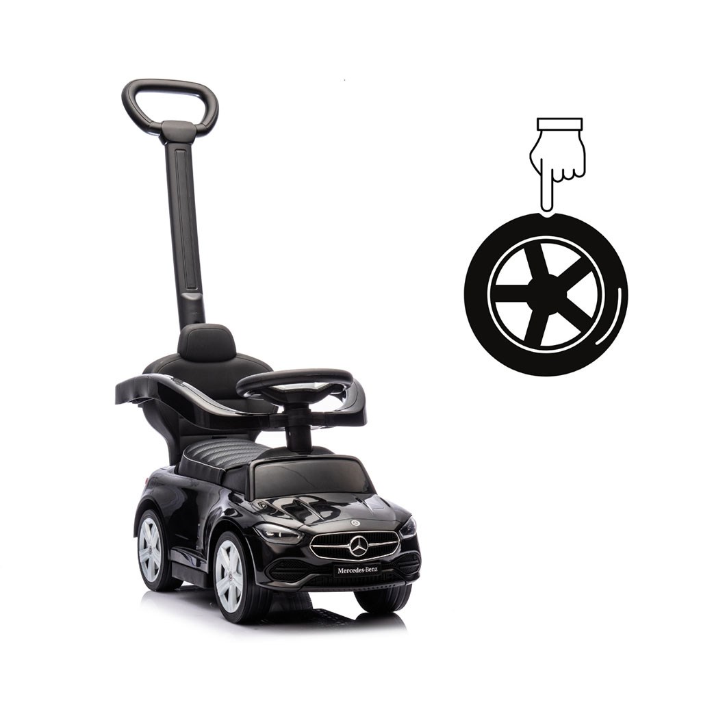 El patinete Mercedes Clase C con asa es un juguete elegante y muy realista que no solo proporciona mucha diversión al niño, sino que también apoya su desarrollo. Diseñado teniendo en cuenta a los más pequeños aficionados a los automóviles, este mini coche Mercedes llama la atención por su apariencia y atención al detalle. Los niños pueden sentirse como verdaderos conductores, explorando la alegría de sus primeros "viajes" y conociendo su entorno. Este patinete representa una combinación única de estilo clásico, comodidad y funcionalidad, que rápidamente se convertirá en el juguete favorito de cualquier niño.