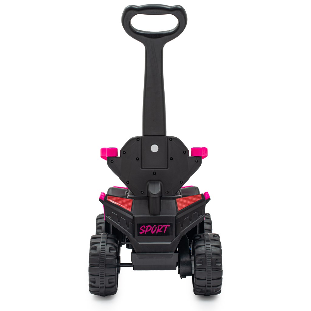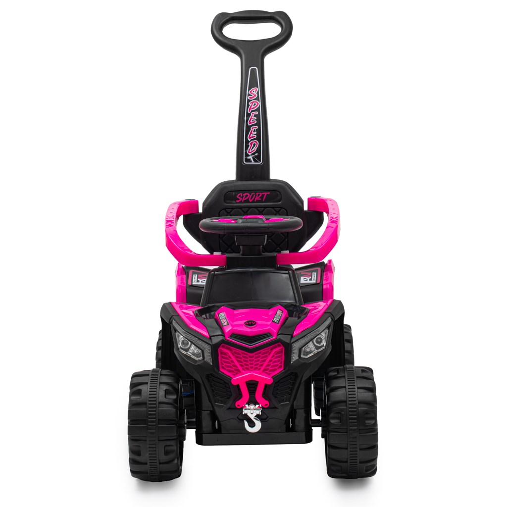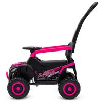 Ruggy destaca por su atractivo diseño todoterreno inspirado en vehículos off-road. Su construcción sólida, líneas deportivas y colores dinámicos seguro que llamarán la atención de cualquier niño curioso. Además, un asiento ergonómicamente diseñado de cuero ecológico garantiza un viaje cómodo.