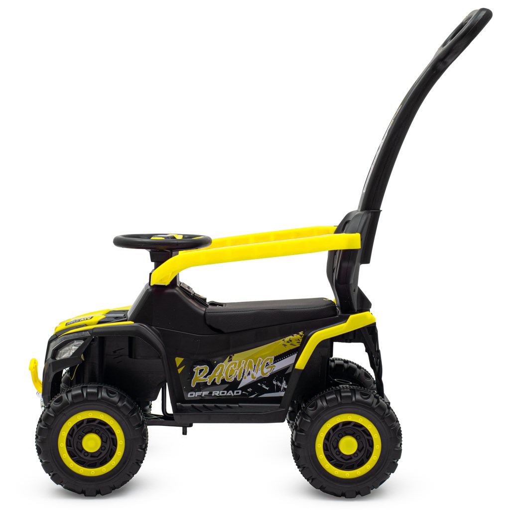 Ruggy destaca por su atractivo diseño todoterreno inspirado en vehículos off-road. Su construcción sólida, líneas deportivas y colores dinámicos seguro que llamarán la atención de cualquier niño curioso. Además, un asiento ergonómicamente diseñado de cuero ecológico garantiza un viaje cómodo.