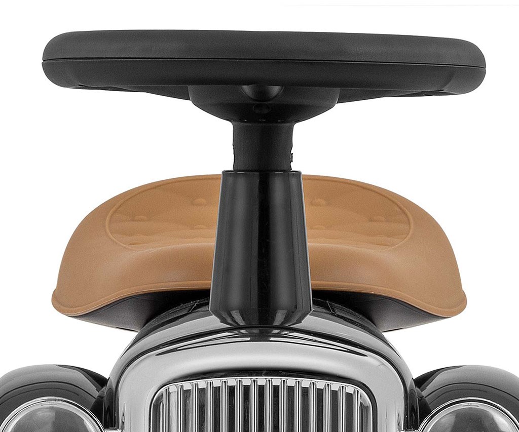 El andador vintage Royce de Milly Mally invita a los pequeños viajeros a un paseo retro. Su diseño a la vista es atractivo gracias a sus colores llamativos. Está ricamente equipado. Este cochecito tiene un volante sonoro y un asiento moldeado. Proporciona a su hijo una gran diversión al conducir y ayuda a desarrollar su sentido del equilibrio y sus habilidades motoras generales. El coche cuenta con una ligera estructura de plástico y formas ergonómicas. El volante giratorio de nuestro andador Royce permite maniobras difíciles, tanto en casa como durante paseos. Las ruedas de este hermoso vehículo están hechas de suave espuma EVA. El coche retro puede ser utilizado por su hijo como su primer vehículo con un verdadero volante y bocina, así como un carrito con un espacio de almacenamiento abierto para juguetes (pequeña maleta), imitación de un tanque de combustible en la parte trasera del vehículo y una parrilla delantera en color plateado. El logo ROYCE añade estética y prestigio a este vehículo. El toque final del andador Royce es su caja de regalo, que se mantiene en el carácter de los vehículos retro de los inicios de la industria automotriz. El andador Royce está destinado a todos los niños que pueden sentarse por sí solos. Se puede usar tanto en interiores como en exteriores y hará que el tiempo de su hijo en los paseos sea más agradable.