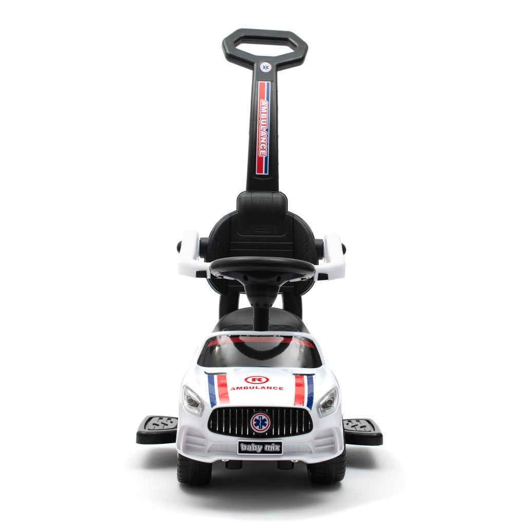 El cochecito Baby Mix AMBULANCE es un verdadero deleite para todos los rescatistas. Su perfecto diseño y detalles como las ruedas, las luces o la forma de la carrocería atraen la atención de todos y rápidamente se convierte en el juguete favorito tanto en casa como durante los paseos. Está fabricado con materiales de alta calidad y cuenta con un panel de sonido. El cochecito ayuda a desarrollar las habilidades motoras del niño y garantiza horas de diversión y alegría. Gracias a un bloqueo especial en la parte trasera, su pequeño piloto está protegido contra volcamientos. La barra de empuje, los reposabrazos y los reposapiés son desmontables, permitiendo que el niño utilice el coche como un correpasillos clásico.