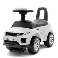 Patinete para niños Baby Mix SUV. El patinete tiene un diseño moderno que imita un hermoso coche y está fabricado con material plástico de alta calidad. Es un juguete genial y seguro. La forma del juguete ayuda a desarrollar las habilidades motoras del niño. Debajo del asiento hay un espacio de almacenamiento para juguetes y otras pequeñas cosas. El patinete para niños tiene un volante con melodías, lo que permite controlar el coche. Los botones del volante permiten reproducir diferentes melodías. El material superior tiene un acabado mate. Funciona con 2 baterías tipo AA, que no están incluidas en el paquete.