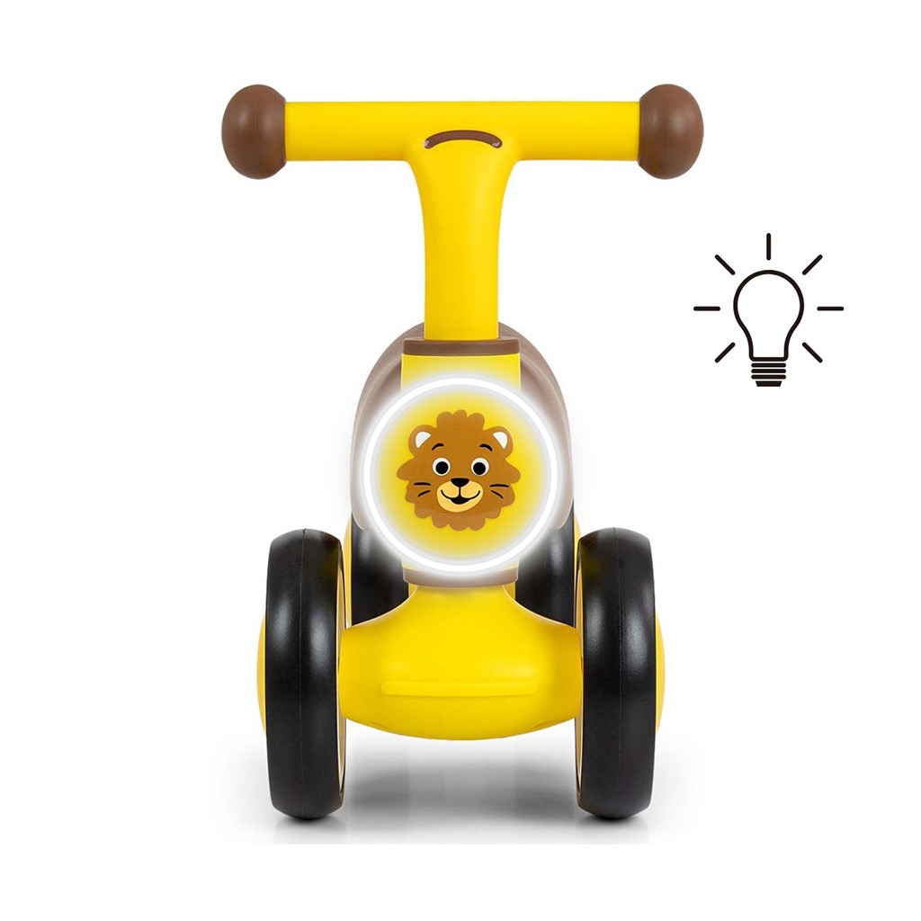 Una de las características clave del YORK es la luz LED incorporada en la parte delantera, que no solo atrae la atención y mejora la estética del patinete, sino que también aumenta la seguridad, haciendo que el viaje sea más realista y emocionante. También incluye efectos de sonido: melodías y sonidos de animales que aumentan su atractivo. Todo el patinete ha sido diseñado con atención al detalle y un diseño colorido con encantadores motivos de animales, convirtiéndolo rápidamente en el juguete favorito de los niños.
