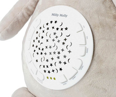Puedes ajustar la duración adecuada: 30, 60 o 90 minutos. También hay 5 niveles de volumen. Un gran complemento de su función es que ofrece 5 tipos de ruido blanco, que tienen un efecto especialmente calmante para el bebé, permitiéndole relajarse y dormir más rápido. Con este juguete, escucharás suaves sonidos: el murmullo del agua con el canto de los pájaros, el latido de un corazón, el goteo del agua, el canto de los pájaros o la lluvia cayendo.