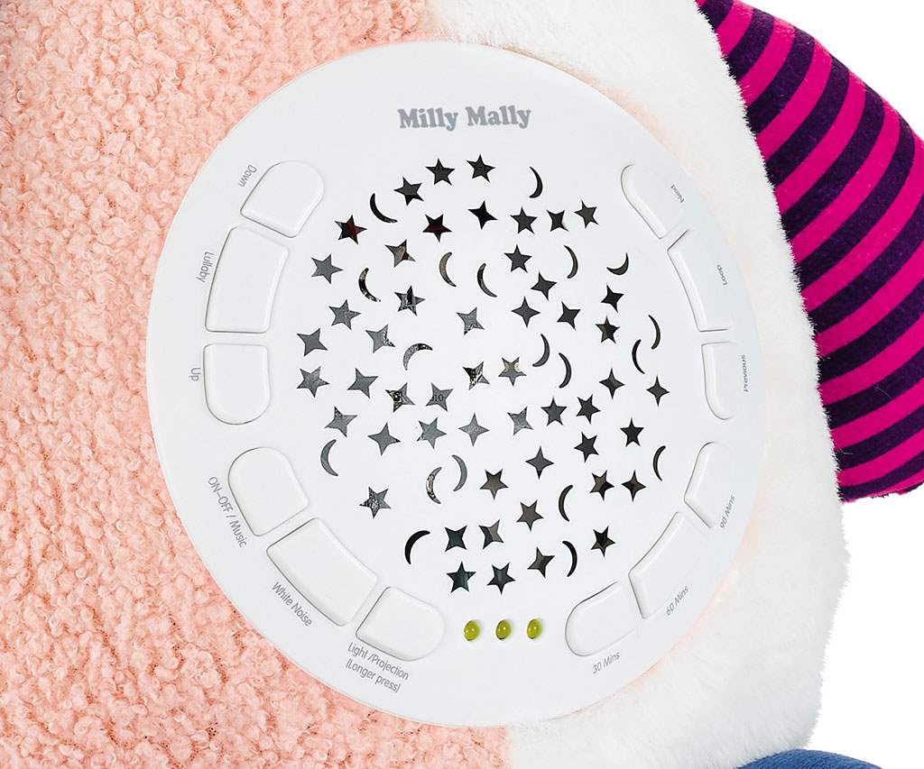 Su pequeño se sentirá seguro y cómodo al mirar este agradable peluche, y las melodías y sonidos relajantes ayudarán a calmarse y dejarse llevar al sueño.