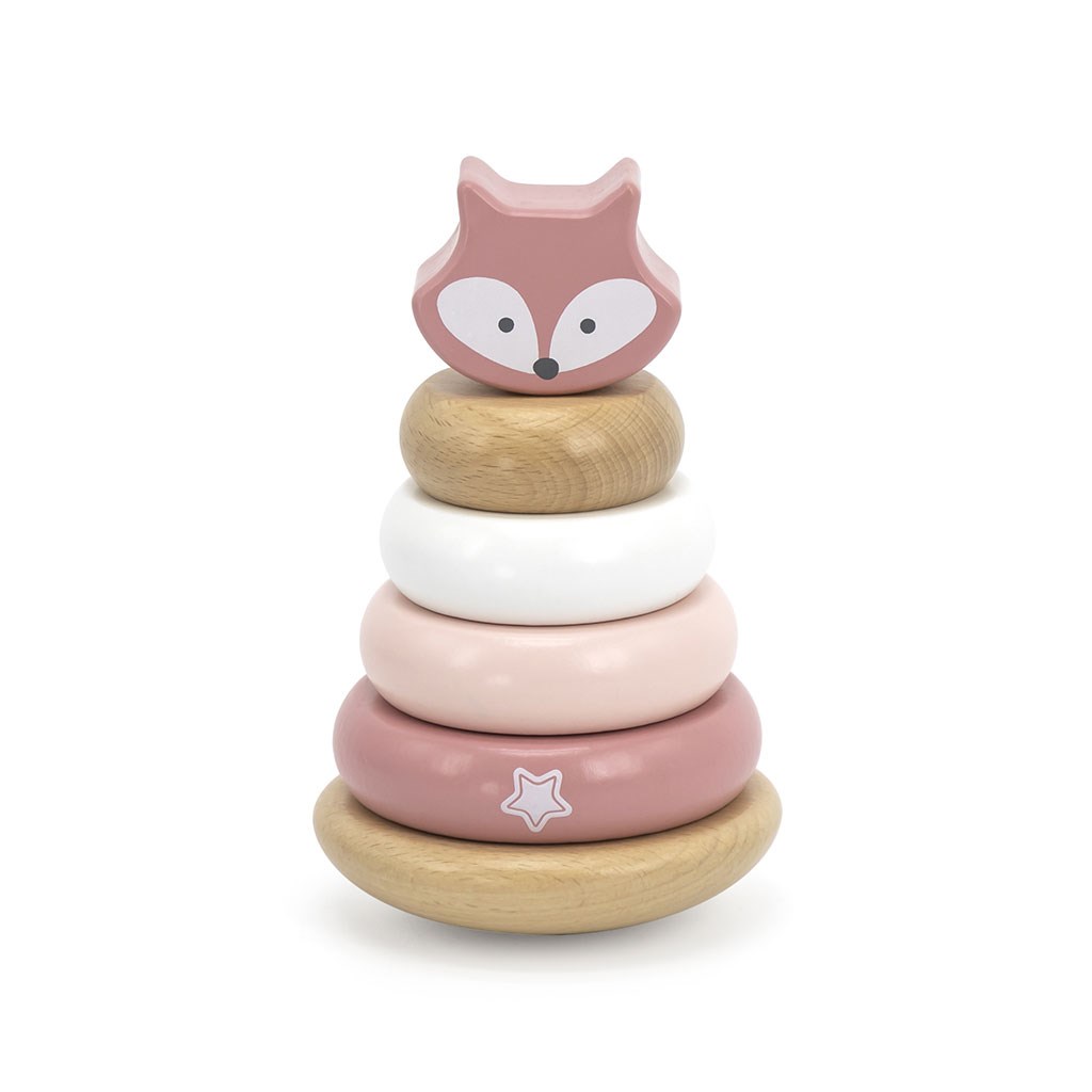 La pirámide educativa de Viga es un juguete clásico para los más pequeños, que ofrece a su hijo un juego divertido, interesante y creativo. El conjunto en colores pastel incluye 5 bloques en forma de disco de diferentes tamaños, incluyendo uno con forma de cabeza de zorro. En la base hay un pincho en el que se colocan las piezas. Este juguete es ideal para los bebés que comienzan a construir torres con bloques. La pirámide ayuda a desarrollar la coordinación mano-ojo, el pensamiento lógico y además fomenta el aprendizaje del reconocimiento de colores. Aquí es importante destacar el valor educativo de la pirámide con el zorro.