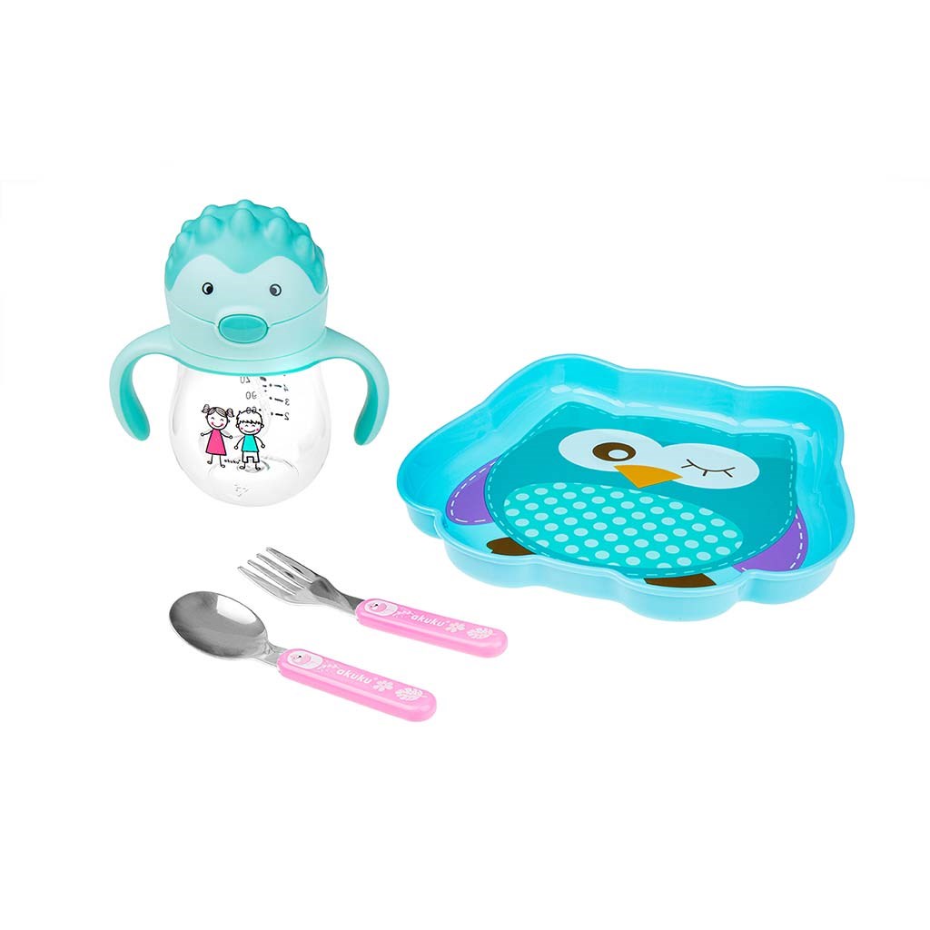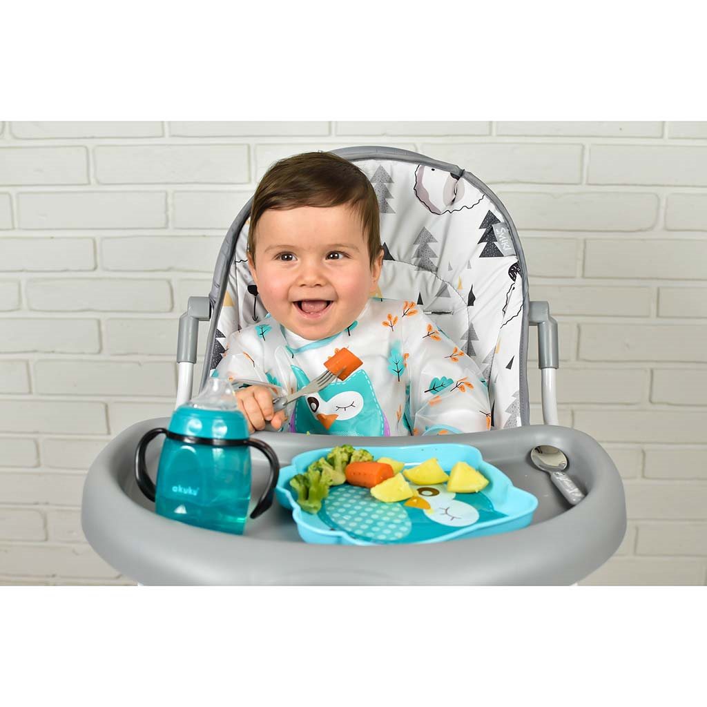 Presentamos el plato de plástico AKUKU. Ha sido diseñado para motivar al niño a la independencia durante las comidas, gracias a sus formas y colores. Está hecho de materiales seguros para el contacto con alimentos. Disponible en dos versiones: elefante y búho.