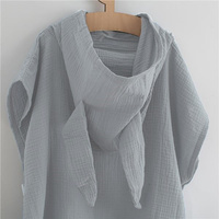 Poncho de muselina para bebés New Baby Feeling. Un poncho estiloso no solo para usar en casa, sino también para nadar en la piscina o junto al agua. El poncho de muselina es ligero, transpirable y muy absorbente gracias al material. Protege al niño del frío y también sirve como una suave toalla. Su corte holgado y orejitas adorables alegrarán a los niños. Con su diseño, crecerá con el bebé y se ajustará a cualquier figura. Se ve genial y se puede utilizar durante todo el año. Para facilitar vestirse y desvestirse, tiene botones en el lateral. Esto permite crear una abertura para los brazos o dejar el corte suelto. Composición: muselina - 100% algodón. Dimensiones: 50 cm sin capucha, ancho: 59 cm.