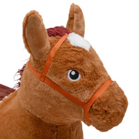 El saltador está cubierto con un suave y antideslizante felpa, muy agradable al tacto. Está equipado con un módulo de sonido – al presionar entre las orejas emite un sonido realista de caballo, lo que estimula la imaginación y motiva a jugar activamente.