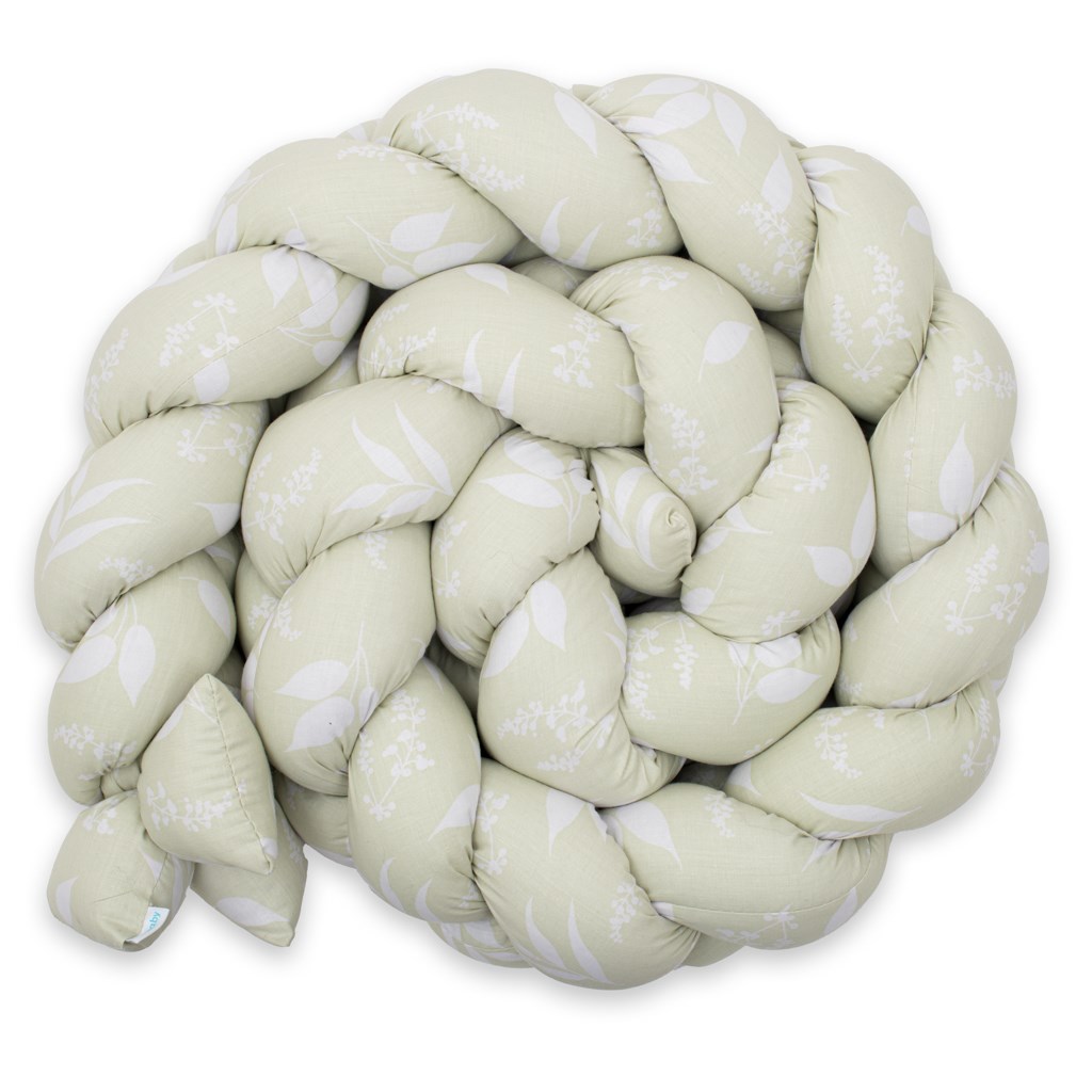 Suave y práctico trenzado de la marca checa New Baby es una alternativa moderna al barandal tradicional o al cojín de la cuna, no solo para la cuna de los bebés. Los tres hilos están hechos de un material de algodón de alta calidad y un relleno de poliéster antialérgico, y están tejidos a mano en forma de trenza. Puedes usarlo en la cuna o en la cuna mecedora, donde protege al bebé de las duras barras de la cuna y lo aísla de la pared fría. En tu cama, cumple la función de capullo, envolviendo al bebé para proporcionarle una mayor sensación de seguridad y comodidad. El barandal se adapta a cualquier cuna y se sujeta fácilmente con las tres cintas incluidas. Un niño mayor puede usarlo para divertirse o como decoración original para la habitación infantil.