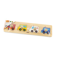 Hermoso y colorido rompecabezas de madera para niños con asas de Viga Autos. Gracias a las asas, los niños pueden sostener el rompecabezas con mayor facilidad y colocarlo en los lugares designados sin dificultad. También ayuda a mejorar la destreza manual y la agilidad, y al mismo tiempo enseña al niño a reconocer formas y colores. Contribuye al desarrollo de la motricidad, mejora la coordinación y las habilidades de observación del niño. El paquete incluye 4 piezas. Está destinado para niños a partir de 12 meses. El primer rompecabezas para sus pequeños, con colores muy vibrantes, un diseño simple y piezas grandes. Nuestra prioridad es la seguridad y calidad de nuestros productos, por lo que los colores utilizados en los juguetes no son tóxicos y cumplen con los estándares de seguridad (EN71 y ASTM). El juguete también es adecuado como un hermoso regalo para los más pequeños. Dimensiones: 32x3x7,5 cm