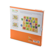 El rompecabezas del Alfabeto sobre base de Viga es el regalo ideal que alegrará a cualquier niño. Este juguete funcional, gracias a sus colores vivos, formas tridimensionales e ilustraciones, mantendrá a su pequeño entretenido durante horas. Los niños deben asociar correctamente las letras de madera del alfabeto con los orificios de la base. En cada orificio hay una imagen que estimula la curiosidad infantil y facilita la asociación de letras. Así, los más pequeños ejercitan sus habilidades manuales a través del juego mientras aprenden las letras.