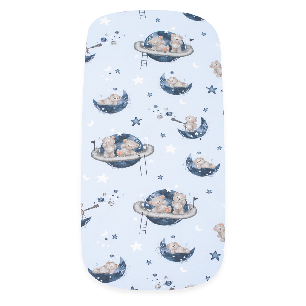 Sábana de algodón New Baby Teddy Bear en el espacio está fabricada con una suave y agradable tela de algodón. Un hermoso motivo infantil que encantará a los ojos de los más pequeños. La goma cosida evita que se deslice del colchón, garantiza un ajuste adecuado de la sábana y permite adaptarse a cualquier forma. La sábana es adecuada para colchones de dimensiones 35 × 75 cm. Es una sábana de algodón clásica, que no es elástica, y por lo tanto tiene unas dimensiones de 50x80 cm, para que se ajuste perfectamente al colchón incluso por debajo.
