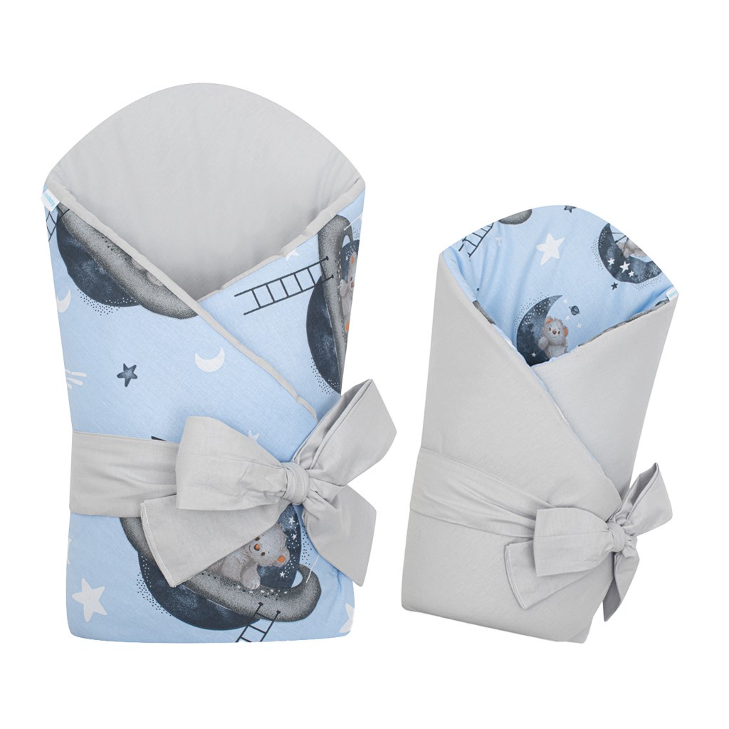 Es una hermosa manta envolvente reversible para bebés de la marca checa New Baby, con un adorable diseño de ositos en el espacio. La manta está fabricada con un material de alta calidad y suave que proporciona un calor agradable a su bebé. Su grosor de hasta 3 cm la hace adecuada para días más fríos y es lo suficientemente resistente. El bonito motivo infantil será un deleite para los ojitos de su bebé. Cuenta con cierre de velcro y una cinta para atar en un lazo.