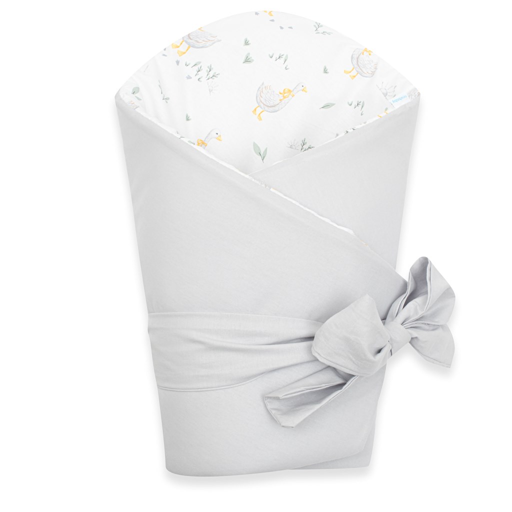 Hermosa manta envolvente reversible para bebés de la marca checa New Baby Husičky. La manta está fabricada con un material de alta calidad y suave, que le garantiza a su bebé un calor agradable. Con un relleno de hasta 3 cm, lo que significa que la manta es adecuada incluso para días más fríos y es lo suficientemente resistente. Un bonito diseño infantil con adorables patitos que encantarán a los ojos de su pequeño. Cierre con velcro y cinta para atar en lazo.