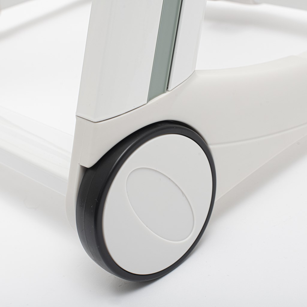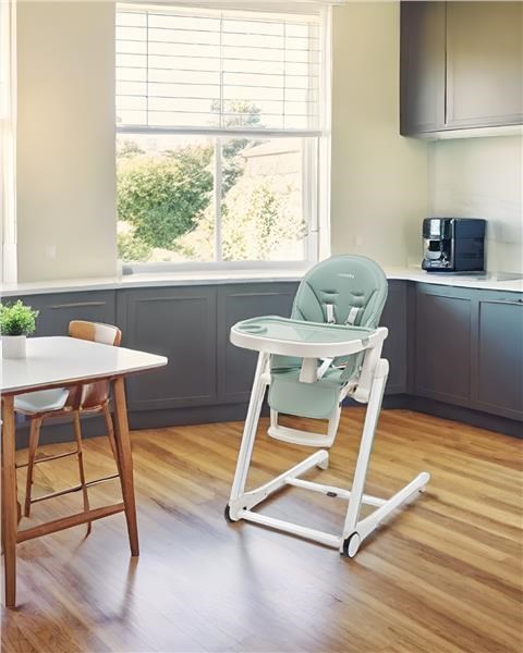 -La silla de comedor está equipada con dos ruedas con freno y dos patas de goma.