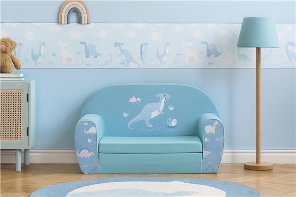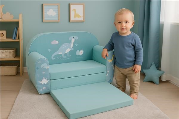 Sofá infantil desplegable New Baby Dinosaur es un complemento muy bonito y popular para la habitación de los niños. Nuestro sofá para los más pequeños está hecho de espuma suave y ligera, y cuenta con una funda de algodón extraíble que se puede lavar. Gracias a la cremallera, la funda se puede quitar fácilmente. La funda tiene colores muy agradables y está decorada con la imagen de un dinosaurio, lo que seguramente captará la atención del niño. Asegura comodidad y complementa con estilo la habitación infantil. El sillón puede ser utilizado durante el descanso, viendo cuentos o también durante el juego. Nuestra colección propia proviene de los talentosos diseñadores de la empresa Carero bajo la marca New Baby. Imprimimos los diseños en materiales de calidad. Diseñamos patrones atemporales, elegantes y con estilo para los niños. Los materiales tienen el certificado OEKO-TEX STANDARD 100. Dimensiones: altura x ancho x profundidad: 42×78×35 cm. La longitud del sofá desplegado es de 81 cm. La altura de la parte del asiento desde el suelo es de 14 cm. La profundidad del asiento es de 28 cm. La longitud del asiento es de 54 cm. Composición: funda 100% algodón, material interior: espuma de poliuretano.