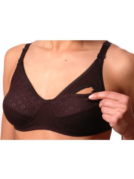 El sujetador de lactancia está fabricado con materiales de alta calidad que no irritan la piel de la madre durante la lactancia. Las copas elásticas son desmontables, lo que permite amamantar sin necesidad de abrir o quitar todo el sujetador. El sujetador de lactancia tiene copas elásticas que permiten la colocación de compresas o recolectores de leche, protegiendo así la ropa de manchas. Durante la lactancia, el pecho es sostenido por una banda de tela especialmente diseñada y anatómicamente moldeada. Composición: 100% algodón. Tamaño 75A.