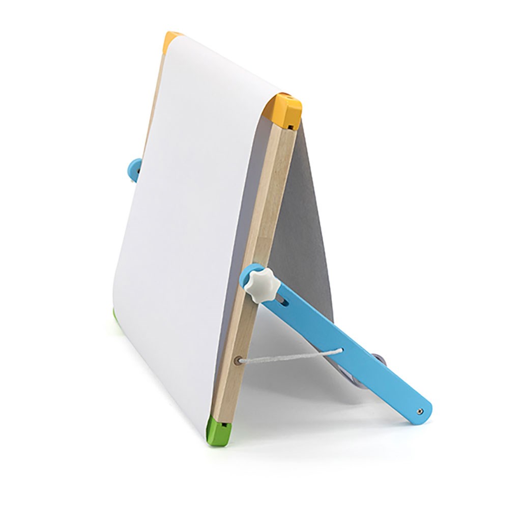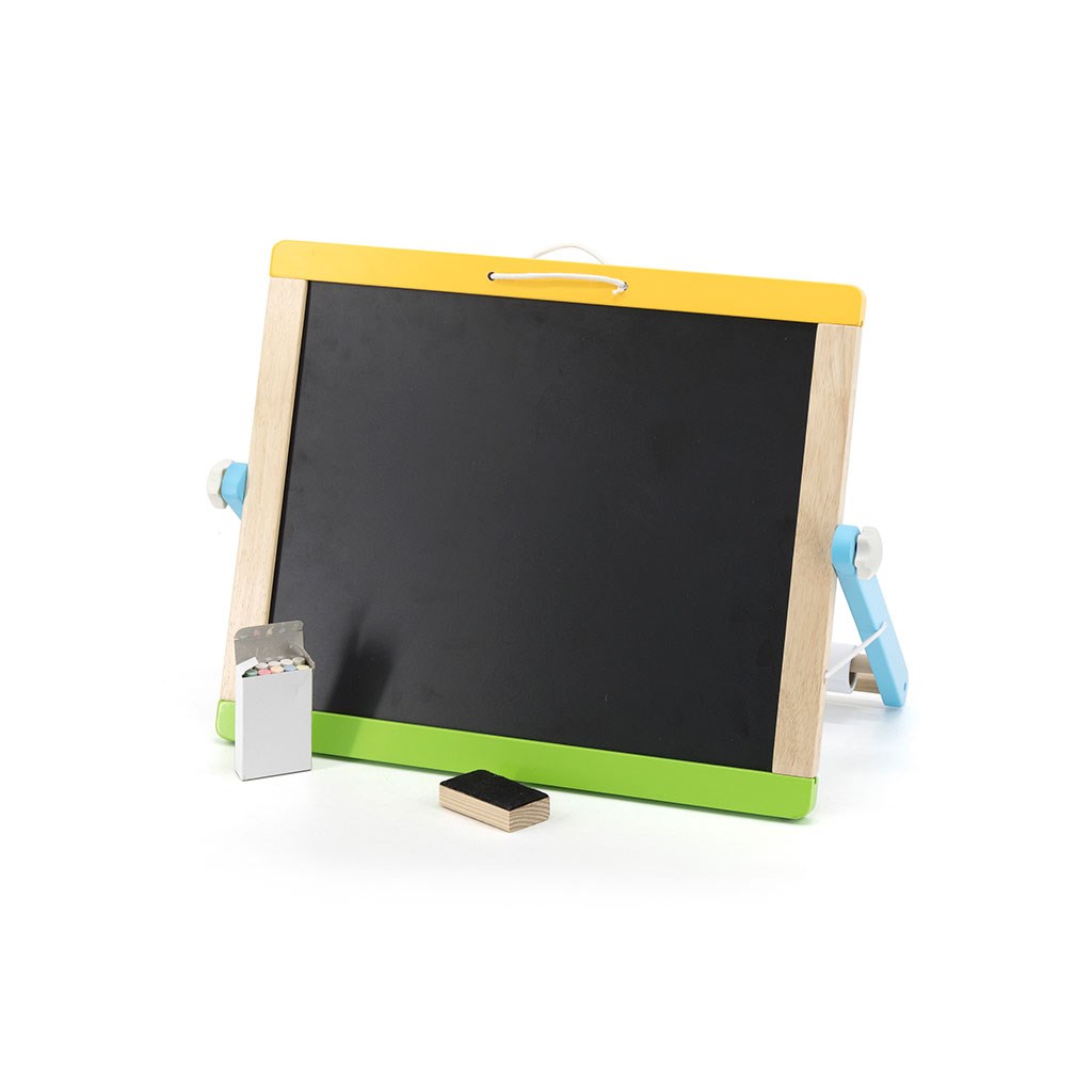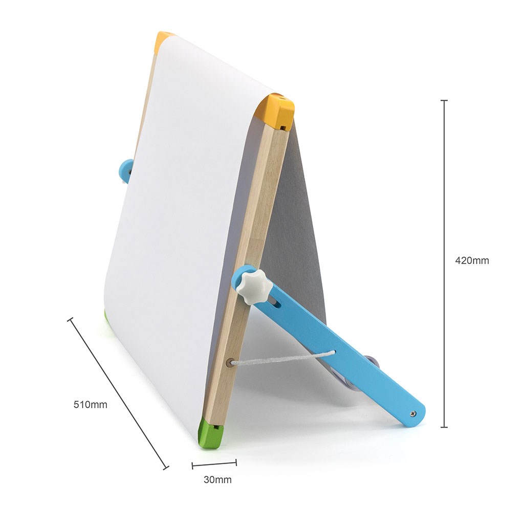 Pizarra doble cara con accesorios es un producto multifuncional que ayudará a los niños a aprender a contar, pintar y escribir. Por un lado, es una pizarra magnética donde se pueden pegar los 26 imanes con letras, 29 imanes con figuras geométricas y 10 números incluidos, utilizando tarjetas de muestra o la imaginación propia. Además, se puede escribir en la pizarra con un rotulador. Por el otro lado, hay una pizarra de tiza con una esponja. En la parte posterior de la pizarra también hay un rollo de papel que se puede desenrollar sobre la pizarra.