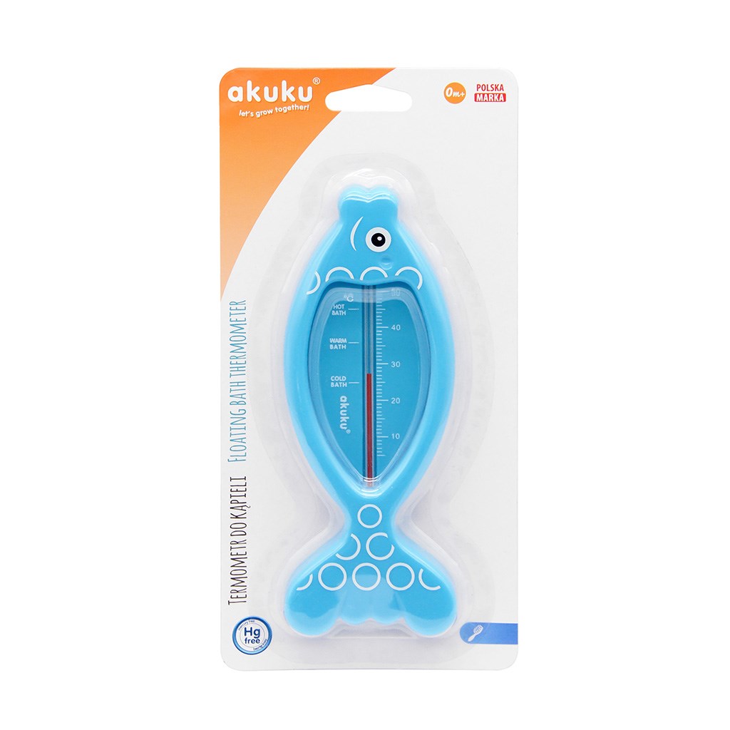 Termómetro para bebés Akuku para la bañera. Este termómetro se utiliza para medir la temperatura del agua en el baño del bebé. Gracias a su gran escala, puedes leer fácilmente la temperatura. Su diseño ligero le permite flotar en la superficie del agua. Está fabricado con materiales de alta calidad y seguros. No contiene mercurio.