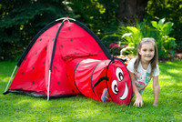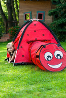 Gran tienda infantil Baby Mix Mariquita con túnel para tus pequeños activos. A casi todos los niños les encanta construir tiendas improvisadas con la ayuda de sillas, mesas y mantas, y nosotros lo tenemos todo resuelto. Gracias a nuestra tienda, tu princesa finalmente podrá tener su habitación soñada, su propio reino, un refugio donde podrá disfrutar de su privacidad o, por el contrario, invitar a sus mejores amigas. Ya sea en su habitación, en el jardín en verano o en la playa, los niños vivirán muchas aventuras creando sus propios mundos imaginarios. El túnel se inserta en la tienda, no está fijo, se puede manipular libremente. Tanto la tienda como el túnel son fáciles y rápidos de montar y desmontar. Está fabricado con tejidos de calidad y resistencia. Para niños a partir de 3 años.