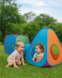 **Hermoso toldo infantil Baby Mix 3 en 1** es un juego de tres partes que consta de dos toldos independientes conectados por un túnel de arrastre. A casi todos los niños les encanta construir toldos improvisados con la ayuda de sillas, mesas y mantas, y con nosotros tienes todo lo necesario. Gracias a nuestro conjunto de dos toldos conectados por un túnel, tus hijos tendrán diversión asegurada. Ya sea en su habitación, en el jardín durante el verano, o en la playa, vivirán muchas experiencias divertidas y un movimiento activo sin fin. Todo el conjunto, tanto los toldos como el túnel, se caracteriza por su rápida y sencilla instalación y desinstalación. Por ello, puedes montar esta increíble estructura de juego para los niños en cualquier lugar y en cuestión de segundos. El túnel se inserta en los toldos, no está fijado de manera permanente, lo que permite manipularlo libremente. Las aberturas aseguran una buena circulación de aire. Está hecho de un tejido de calidad y resistente. Diseñado para niños a partir de 3 años.