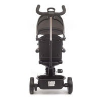 Twinkle cuenta con un manillar ajustable, función de rueda libre, freno, cinturones de seguridad con protectores y un respaldo ajustable en tres posiciones, garantizando el control y la comodidad total tanto para el niño como para los padres. Su marco de acero ligero pero resistente, las ruedas con relleno de espuma y rodamientos, su estructura plegable y elementos prácticos como la capota de malla, luz LED, porta bebidas y dos cajas de almacenamiento, la convierten en la opción perfecta para cada ocasión – en la ciudad, durante paseos o en excursiones. Al retirar el manillar, las barandillas y la capota, Twinkle se puede usar como un triciclo clásico.