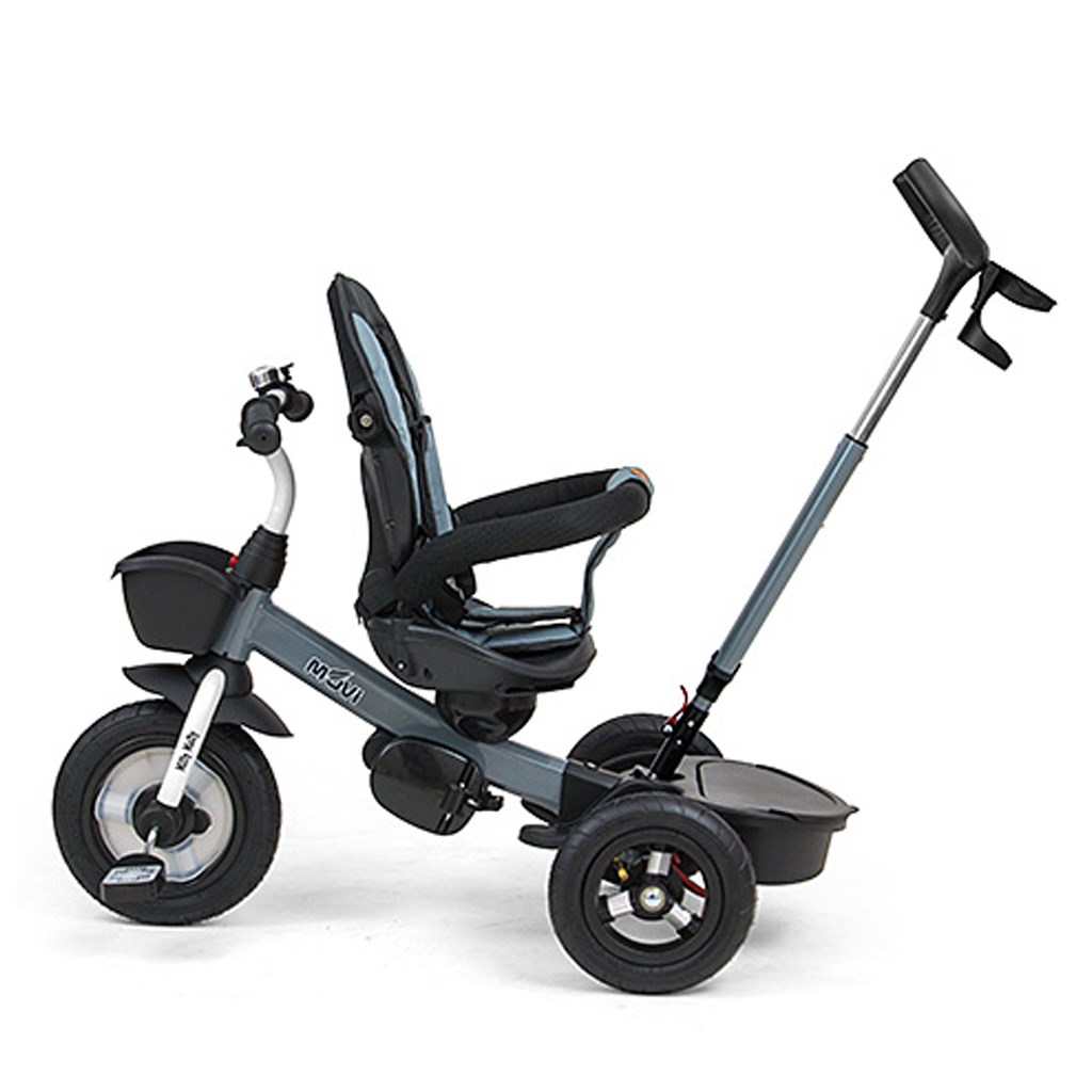 Está fabricado con materiales de alta calidad y duraderos. Tiene un diseño moderno, un asiento cómodo y ergonómicamente diseñado, que es giratorio 360 grados, lo que permite al niño viajar en dirección o en contra de la marcha. La seguridad y comodidad durante el trayecto están garantizadas por una barra de seguridad, cinturones de seguridad de tres puntos, estribos cómodos y grandes ruedas inflables que absorben los impactos y proporcionan una buena adherencia. El triciclo puede ser manejado tanto por el niño como por el padre a través de un mango ajustable para empujar. Al quitar la barra de dirección, la capota plegable que protege del sol y otros componentes, se convertirá en un triciclo. También puede usarse como alternativa a un carrito de golf. Para almacenar juguetes o artículos del niño, cuenta con una práctica cesta de almacenamiento.
