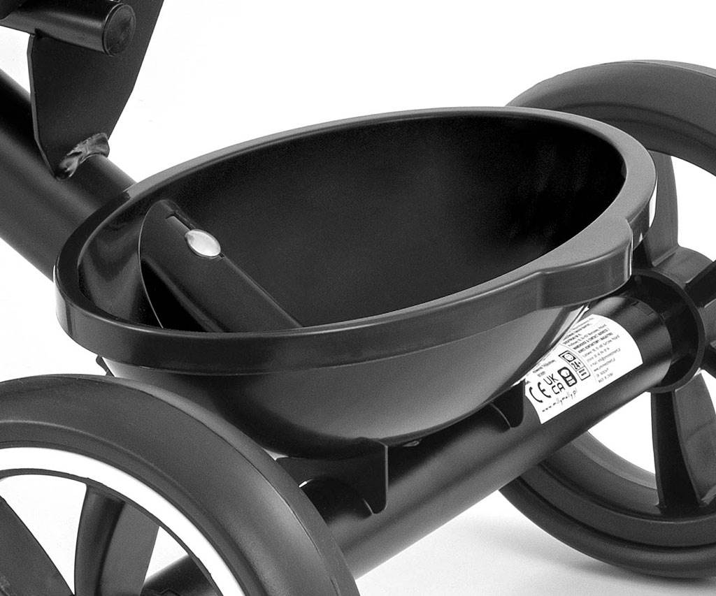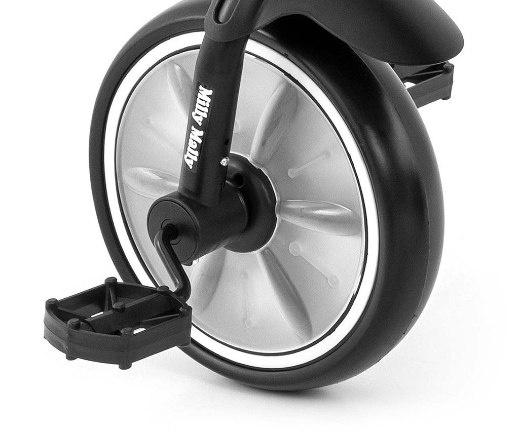 - Protección en la rueda delantera para evitar que se atrapen los pies del niño