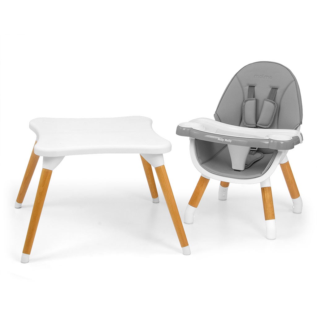 Silla alta moderna y elegante 2 en 1 Malmo para niños. Está fabricada con los materiales de la más alta calidad, combinando funcionalidad y diseño moderno. La versión de silla alta está destinada a niños de 6 meses a 36 meses o hasta alcanzar un peso de 15 kg, y la versión de silla baja más mesa es para niños de 3 a 6 años o hasta alcanzar un peso de 25 kg.