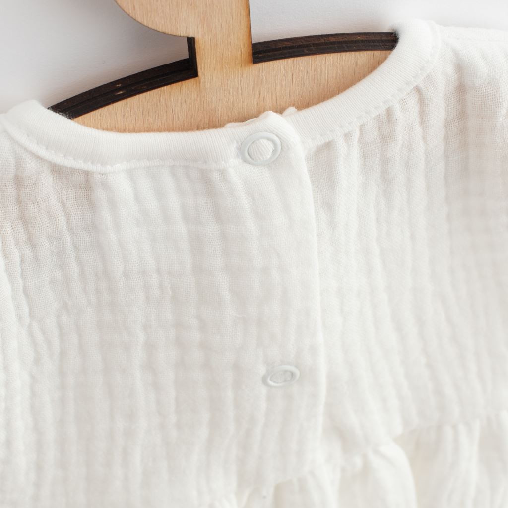 Vestido de muselina de moda para bebés de la marca checa New Baby Elizabeth, ideal para todas las pequeñas princesas. El vestido es sin mangas y tiene un diseño en forma de A. La parte inferior cuenta con una falda bellamente fruncida. El cierre a presión en la parte posterior facilita el vestir. Este vestido está hecho de un material muy suave, blando y de alta calidad, adecuado para recién nacidos. Es ligero y muy agradable de llevar. Para New Baby, la satisfacción del cliente es muy importante, por eso te ofrecemos nuestro vestido de muselina de verano de alta calidad. Composición: 100% algodón.