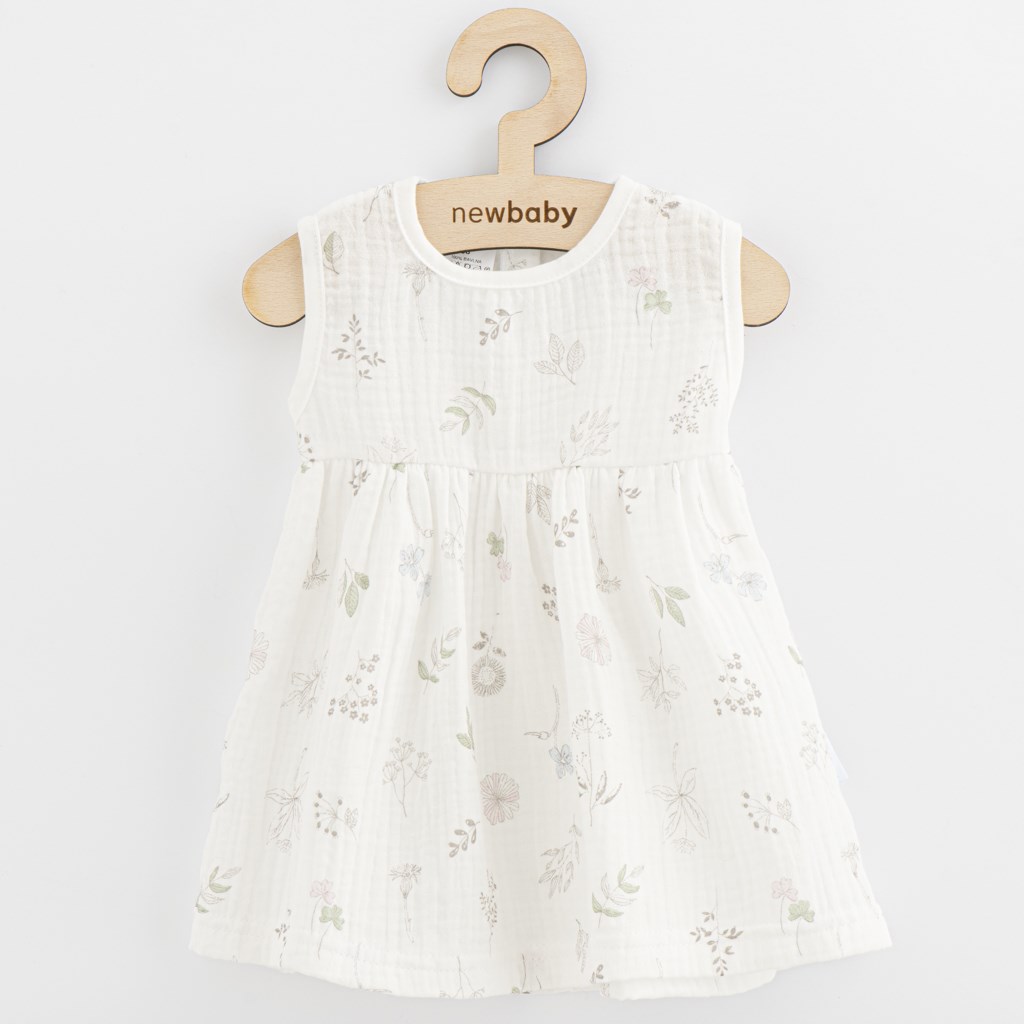 Vestido de muselina de moda para bebés de la marca checa New Baby Zoe, ideal para todas las pequeñas coquetas. El vestido es sin mangas y tiene forma de A. La parte inferior cuenta con una hermosa falda rizada. El cierre de botón en la parte posterior facilita el vestirse. Este vestido está hecho de un material muy suave, agradable y de alta calidad, adecuado para bebés. Son ligeros y muy cómodos de llevar. Para New Baby, la satisfacción del cliente es muy importante, y por eso te ofrecemos nuestros maravillosos vestidos de muselina para el verano. Composición: 100% algodón.